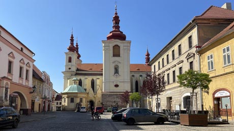 In Louny machten wir einen Abstecher durch die Innenstadt und suchten nach einem Restaurant mit Biergarten, fanden jedoch nur Dönerimbiss, Chinaimbiss und Eiscafé. So fuhren wir schließlich durch das historische Saazer Tor der Stadbefestigung von Louny wieder aus der Innenstadt hinaus, aßen unser Notbrot, radelten weiter und versuchten es in in der nächsten Stadt Žatec erneut.