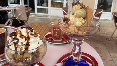 Mühlhausen Eispause unterm Sonnenschirm das Gewitter abwarten